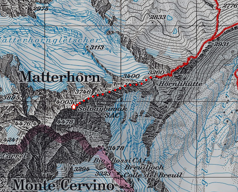 je nejfrekventovanější výstupová trasa na Matterhorn. Vlastně ani bivakem není, byl a je zamýšlený jako nouzové útočiště